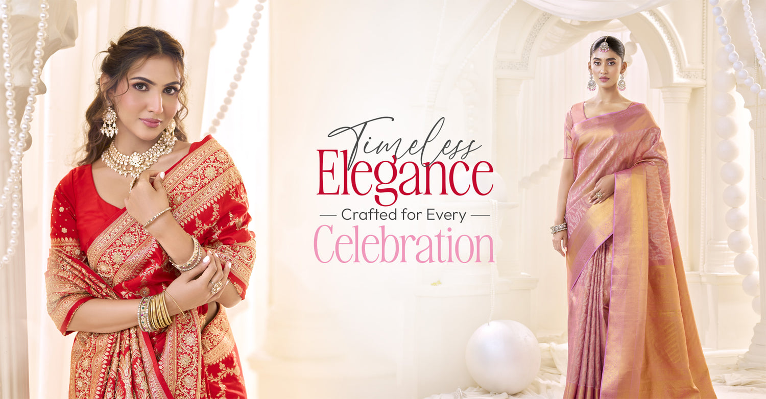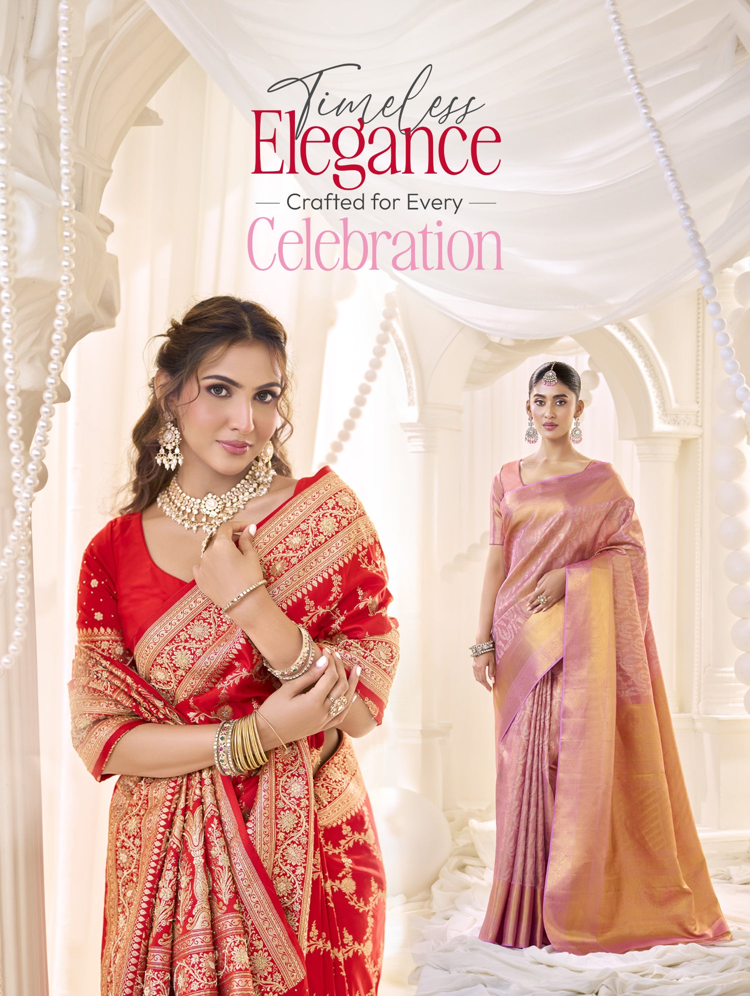 Bridal sarees are a beloved choice for Indian brides, symbolizing tradition and elegance. Choose from georgette, tissue, silk, or crepe sarees, or opt for Kanjeevaram, Banarasi, Navari, or Zari work sarees!