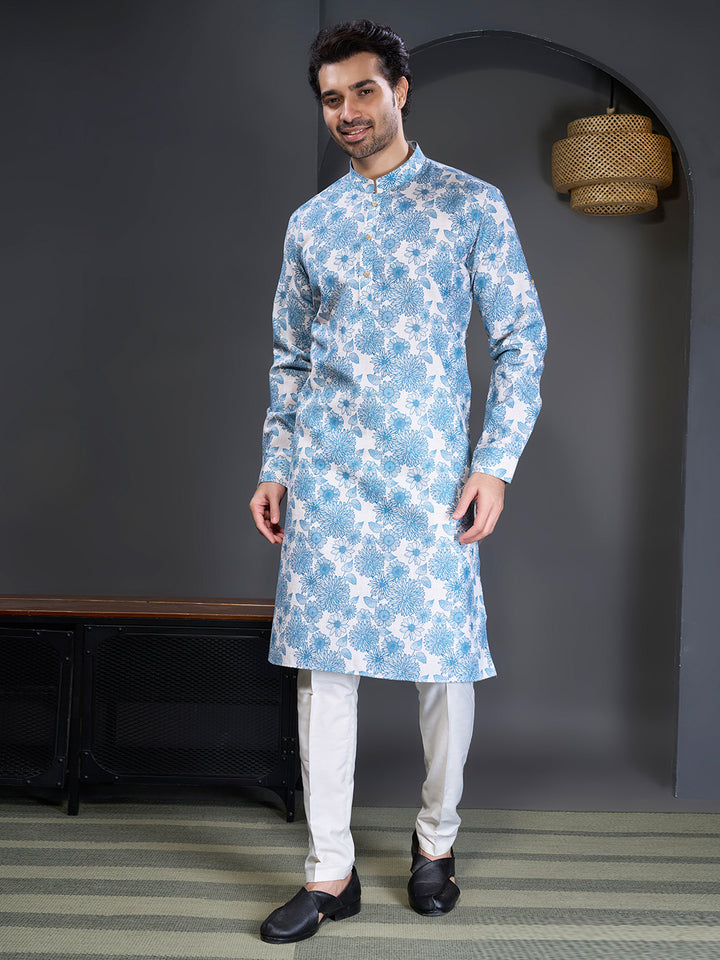 Exude effortless elegance in this Blue and White Floral Printed Kurta for Men.