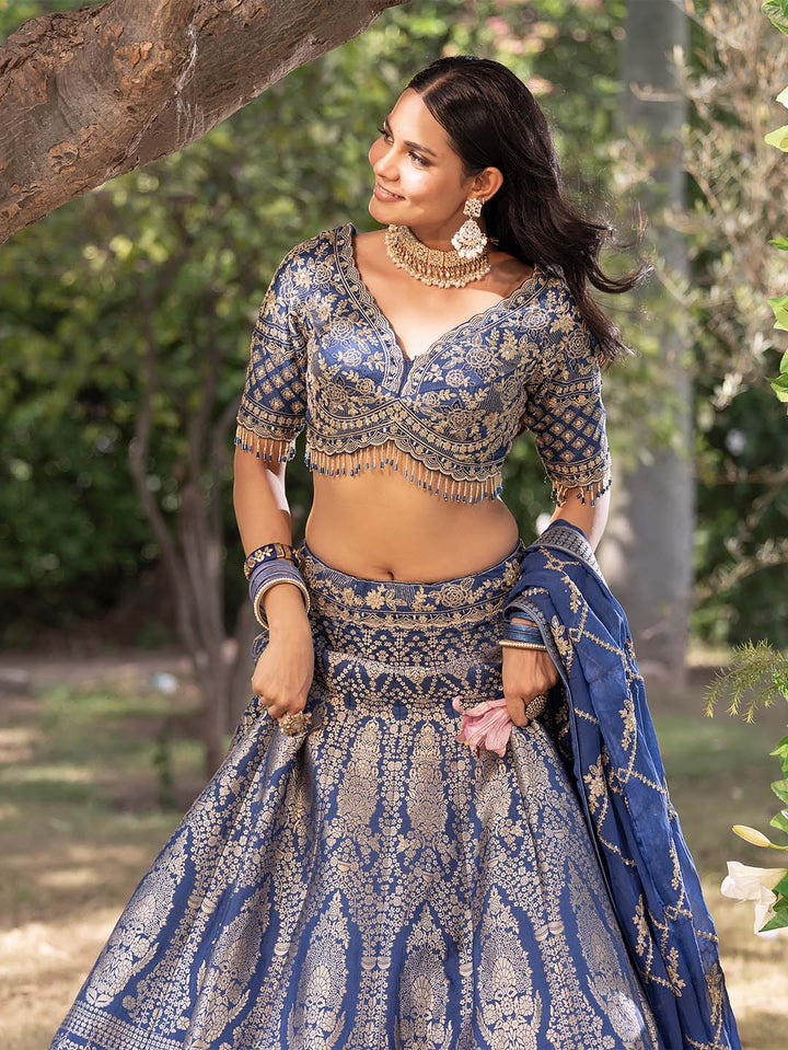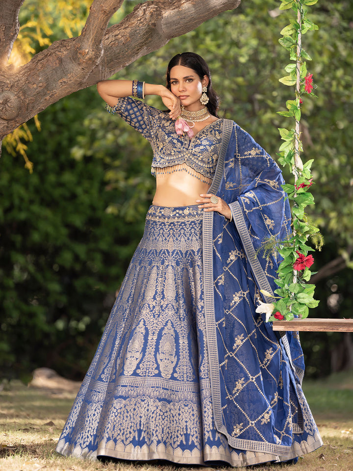 Blue Artistic Graphite Grey Traditional Motif Lehenga