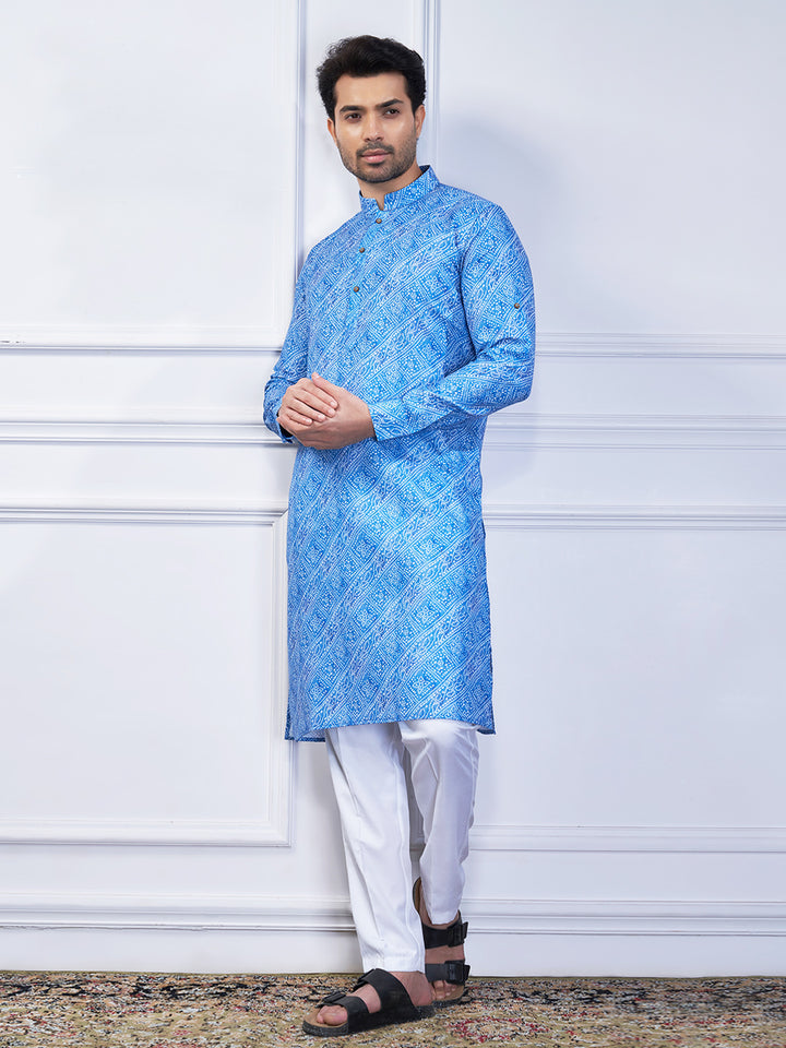 Embrace the charm of traditional craftsmanship with this Blue Bandhani Printed Kurta for Men.