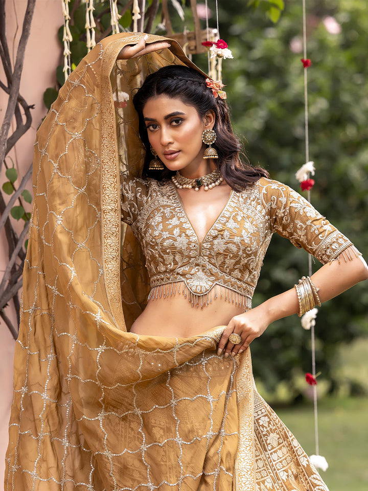 Earthy Caramel Brown Tonal Embroidered Lehenga