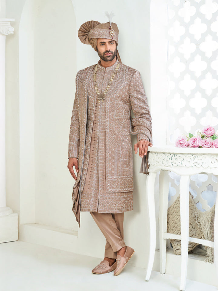 Elegant Dusty Gold Sherwani Set for Wedding & Ceremonies
