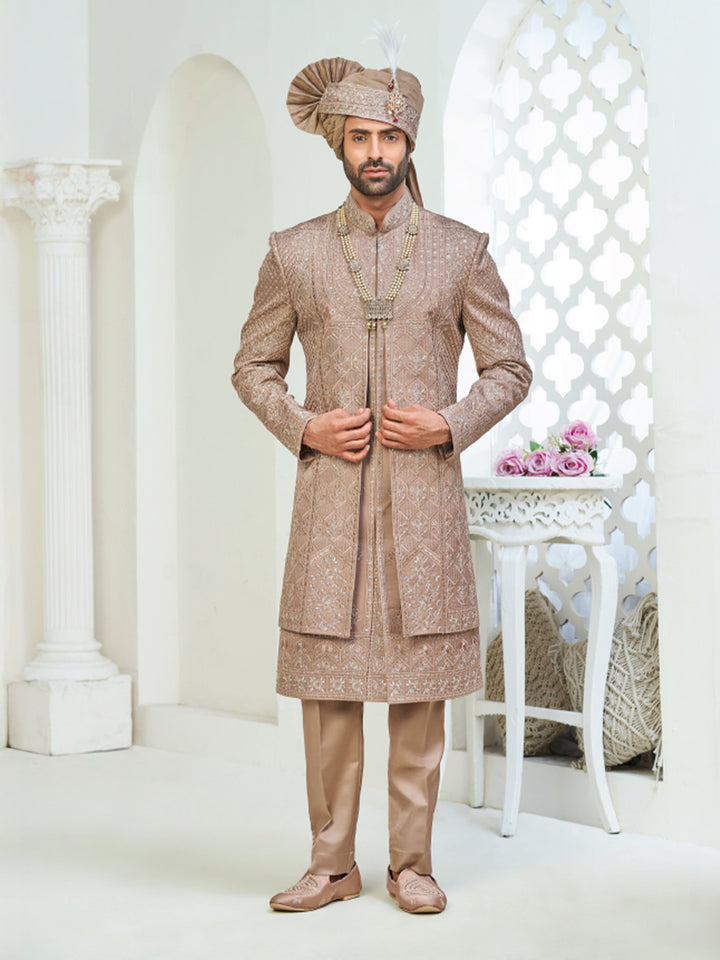 Embroidered Indian Golden Brown Sherwani Outfit