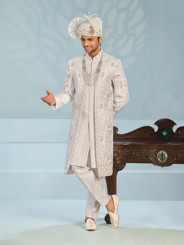 Ivory Silk Sherwani Set of Groom Wedding Wear