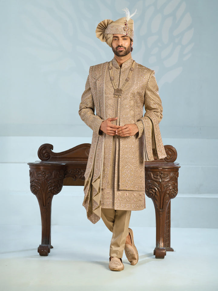 Luxury Golden Brown Sherwani Outfit for Men