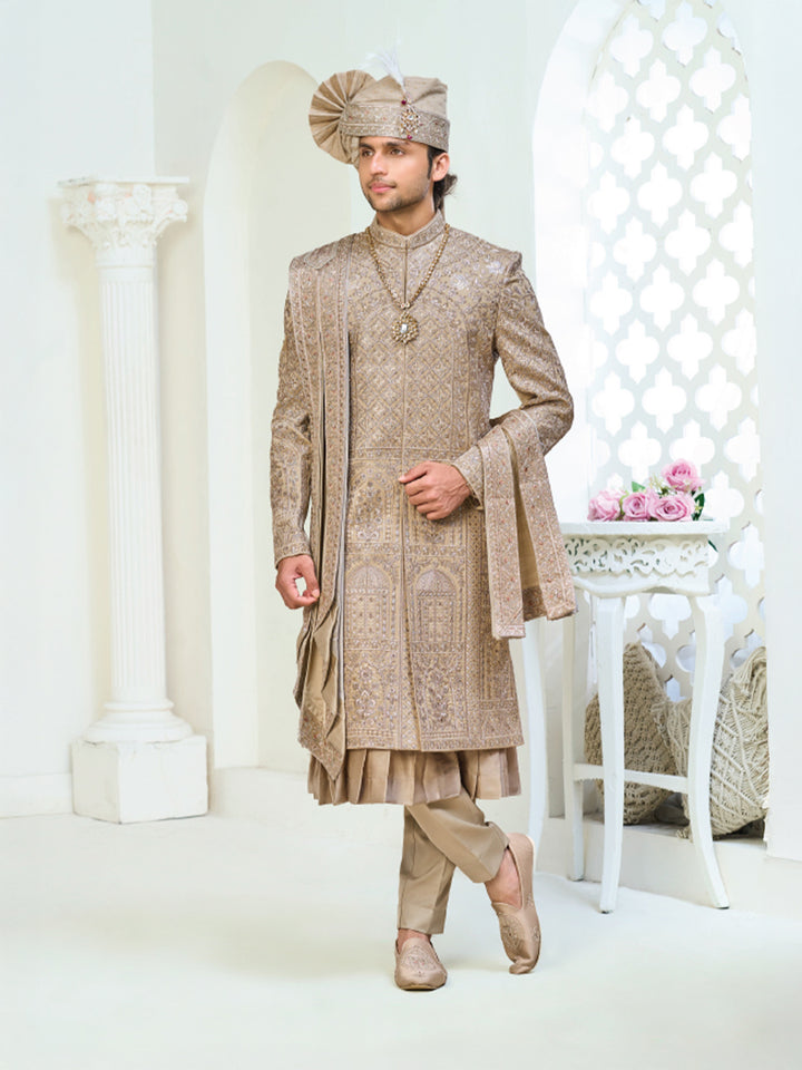Luxury Golden Copper Sherwani Set of Wedding Outfit