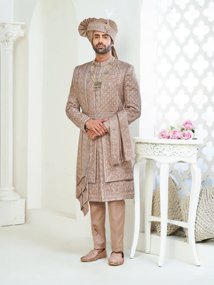 Tailored for comfort and a polished groom fit, this sherwani ensures you look effortlessly majestic throughout your ceremonies, photoshoots, and festivities.
