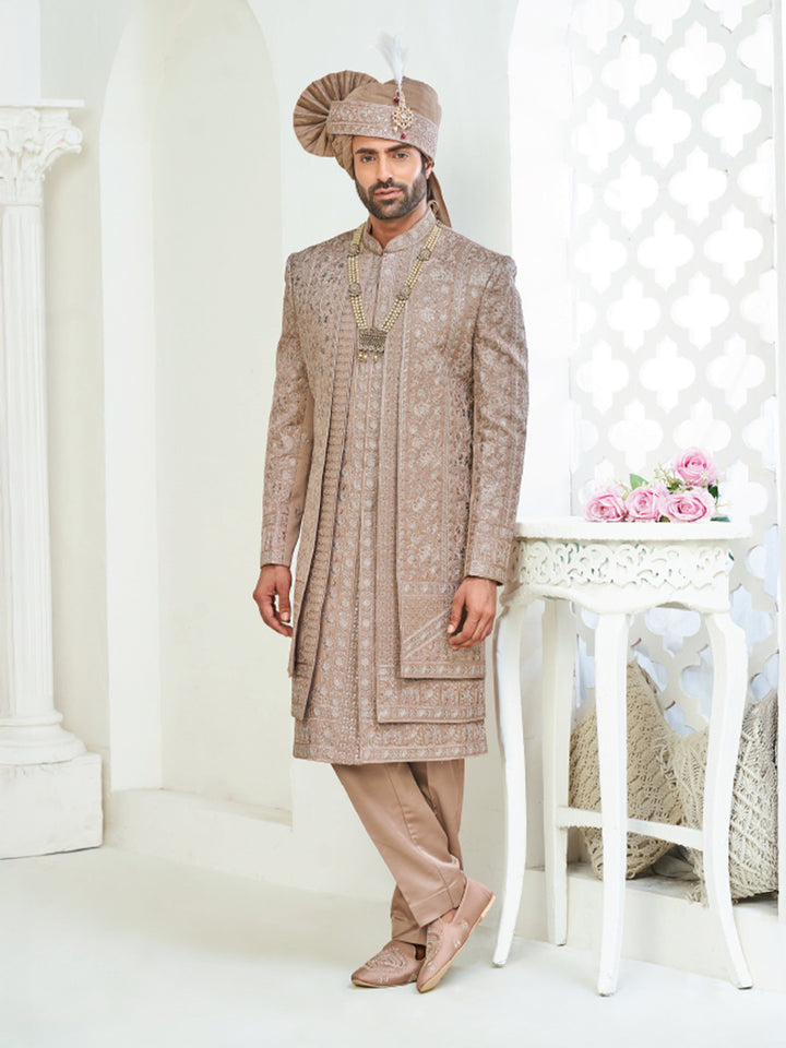 Opulent Golden Brown Sherwani Set for Wedding Wear