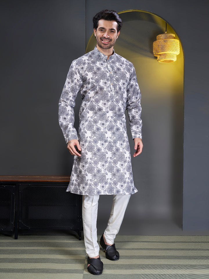 Embrace understated elegance with this White Kurta for Men with Grey Florals.